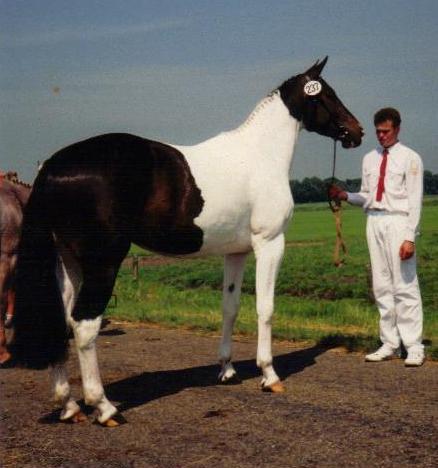 Merrie 1988 Bont 1,66 m KWPN 528003198801040 Hauptstutbuch, prest, ster | KWPN 266 Stb. 1976 Bont 1,66 m Ggk.: KWPN 1,30m Spr. Grand Prix | xx BB2590/NWP1541 pref 1962 Bruin 1,67 m Ggk.: KWPN, NWP | xx 1945 |