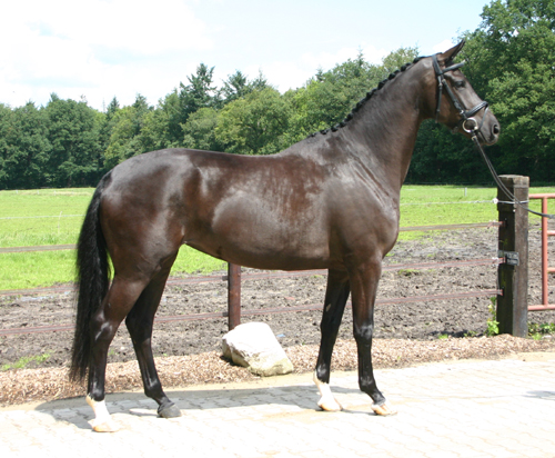 Merrie 2003 Zwart 1,69 m KWPN 0300587 prok, Stb. | KWPN 528003199106398 pref, Stb., WFFS-free 1991 Vos 1,73 m Ggk.: BAVAR, HANN, KWPN, OLDBG, RHEIN, SF, SWB Grand Prix | KWPN 528003198404191 pref, Stb. 1984 Vos 1,69 m Ggk.: HANN, KWPN, OLDBG Grand Prix | OLDBG 1974 |